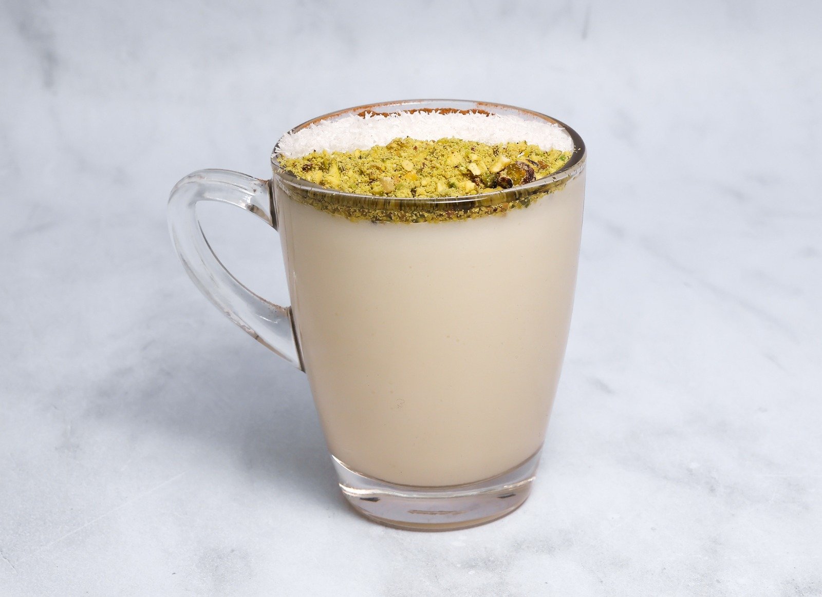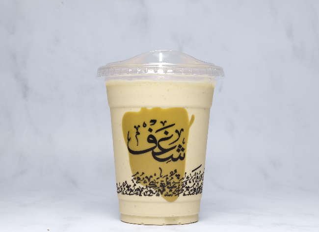 قهوة باردة ممزوجة بالحليب المحلى بنكهة الكراميل المملح بالإضافة إلى مكعبات الثلج